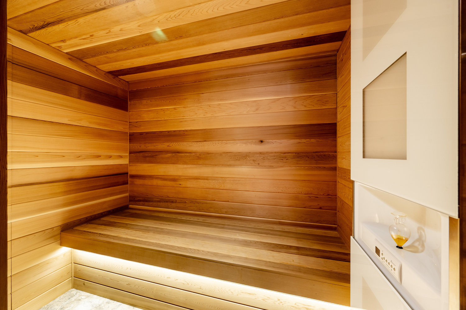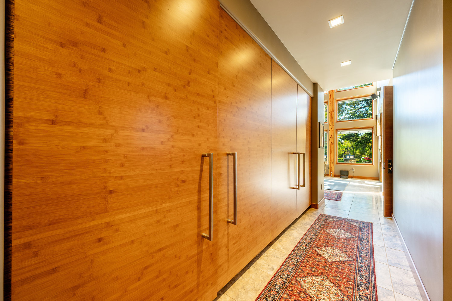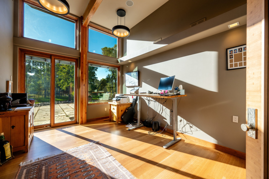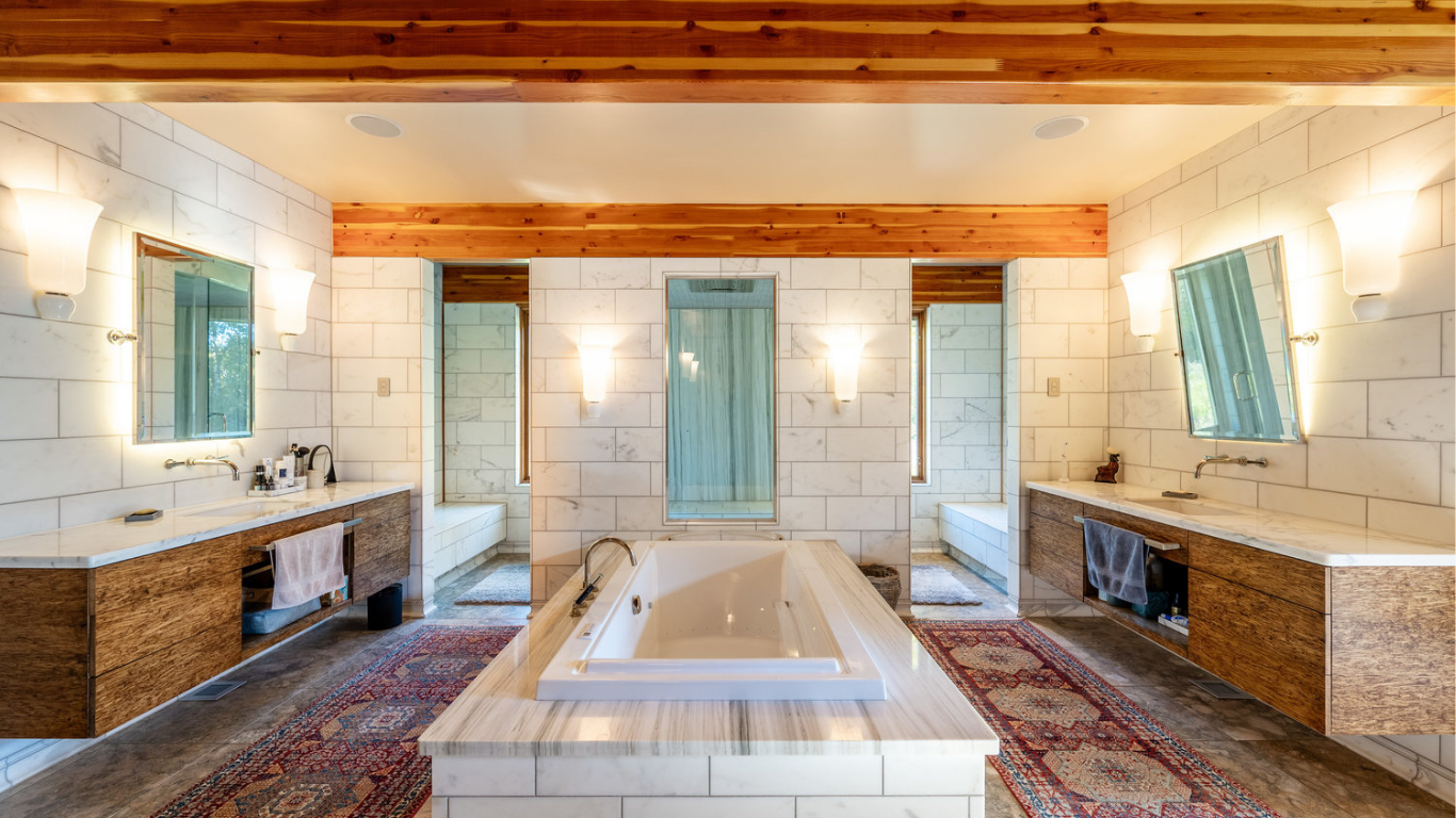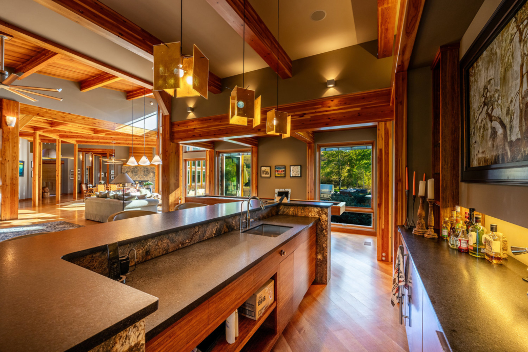 At the heart of the estate is a brilliantly appointed executive home, thoughtfully designed to flow with the natural landscape while showcasing exceptional craftsmanship and attention to detail. The master suite is a private retreat, complete with a sauna, walk-in safe, huge master closet, Jacuzzi tub, his-and-hers bath stations, and a window-framed sitting/exercise room with a private coffee station. A climate-controlled wine cellar ensures your favorite spirits are always ready to enjoy. The private owner wing includes two office spaces for work or study, while expansive windows throughout the home flood the interiors with natural light, highlighting rich wood tones and natural tile.